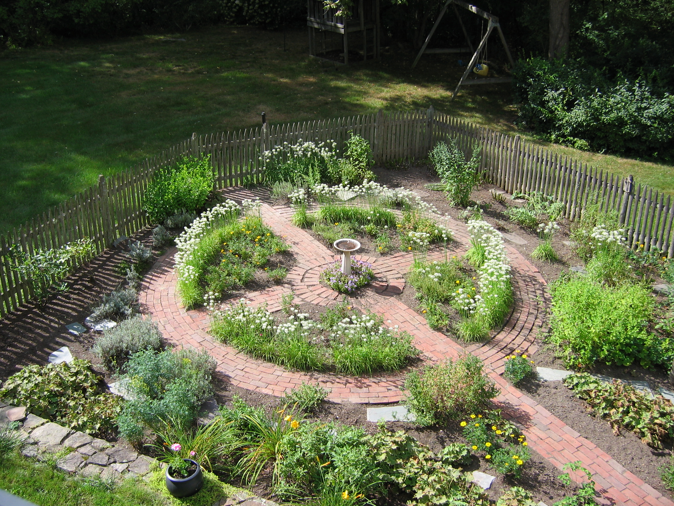 The brick pattern in the garden required more maintenance than the quadrants the brick created. Weeds were forever growing between the bricks and removing them was no small feat. I never used chemicals, as we ate from the garden. So, I’d get on my hands and knees and bit by bit weed all the brick work. I used a chisel-like tool that I’d wedge between two bricks, then rock them gently till the soil loosened and released the weeds to my tug.