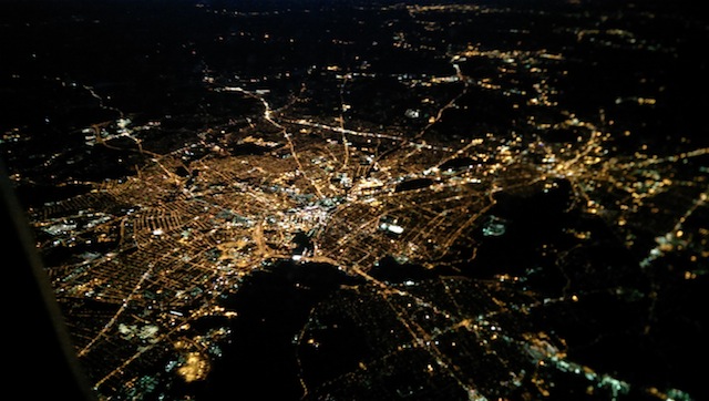 I was away this past week, visiting relatives in the Nashville area. Last night, on my flight home, I sat by a window.