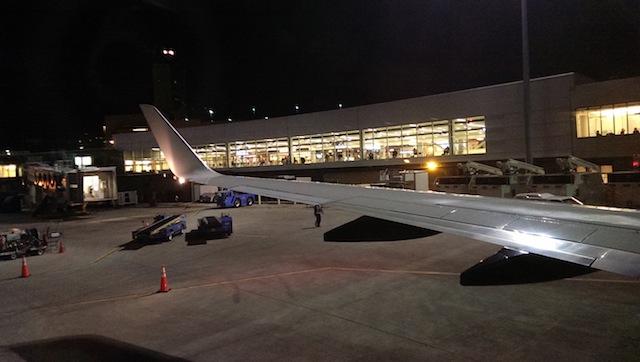 Along the way, city lights provided a spectacular view of sparkling grid-work. This photo isn’t in good focus but I think it’s amazing focus for a cell phone struggling to work with dismal lighting! I love the left-hand side of this city where the outline of the streets is like a spider’s web. I’m thinking this might be D. C. but I’m not sure. It also might be a section of New York. Several of this type of illuminated city passed below us but I couldn’t see what was out the other side of the plane – ocean or more city, which would have been a bit of a clue about where we were.