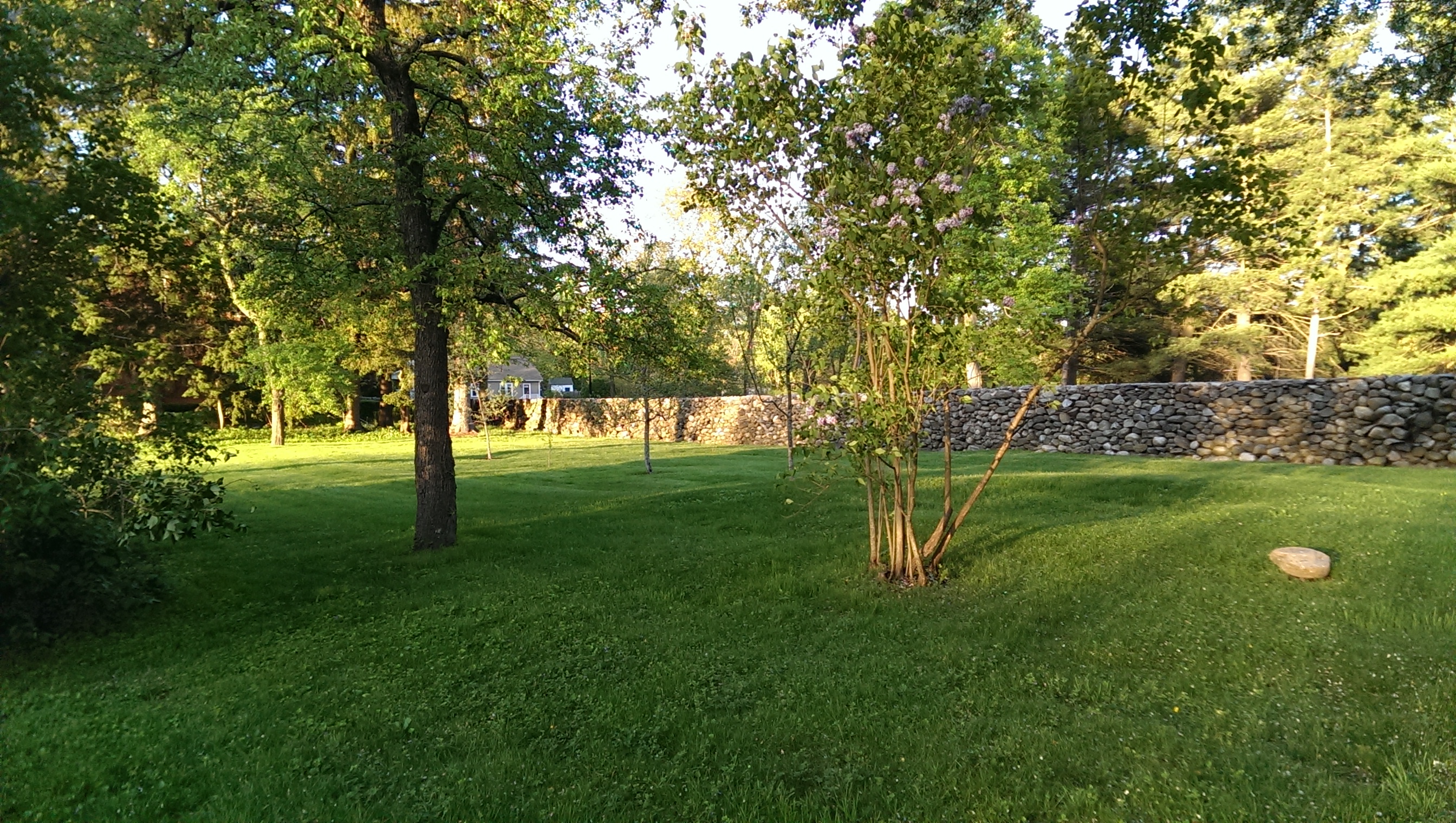 front lawn and stone wall at Stevens Coolidge Place